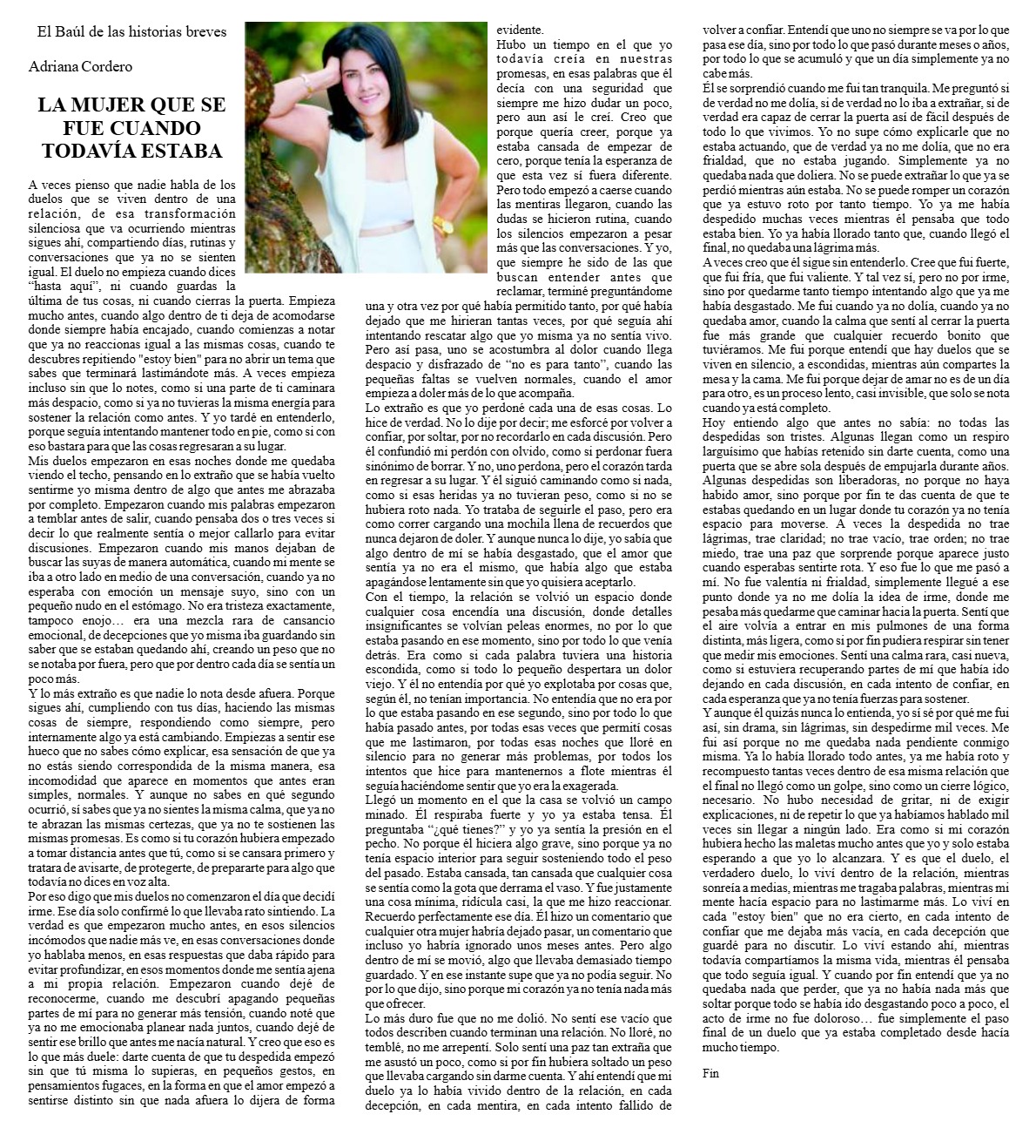 Adriana Cordero LA MUJER QUE SE FUE CUANDO TODAVÍA ESTABA El Baúl de las historias breves Adriana Cordero LA MUJER QUE SE FUE CUANDO TODAVÍA…El Nopal28 noviembre, 2025