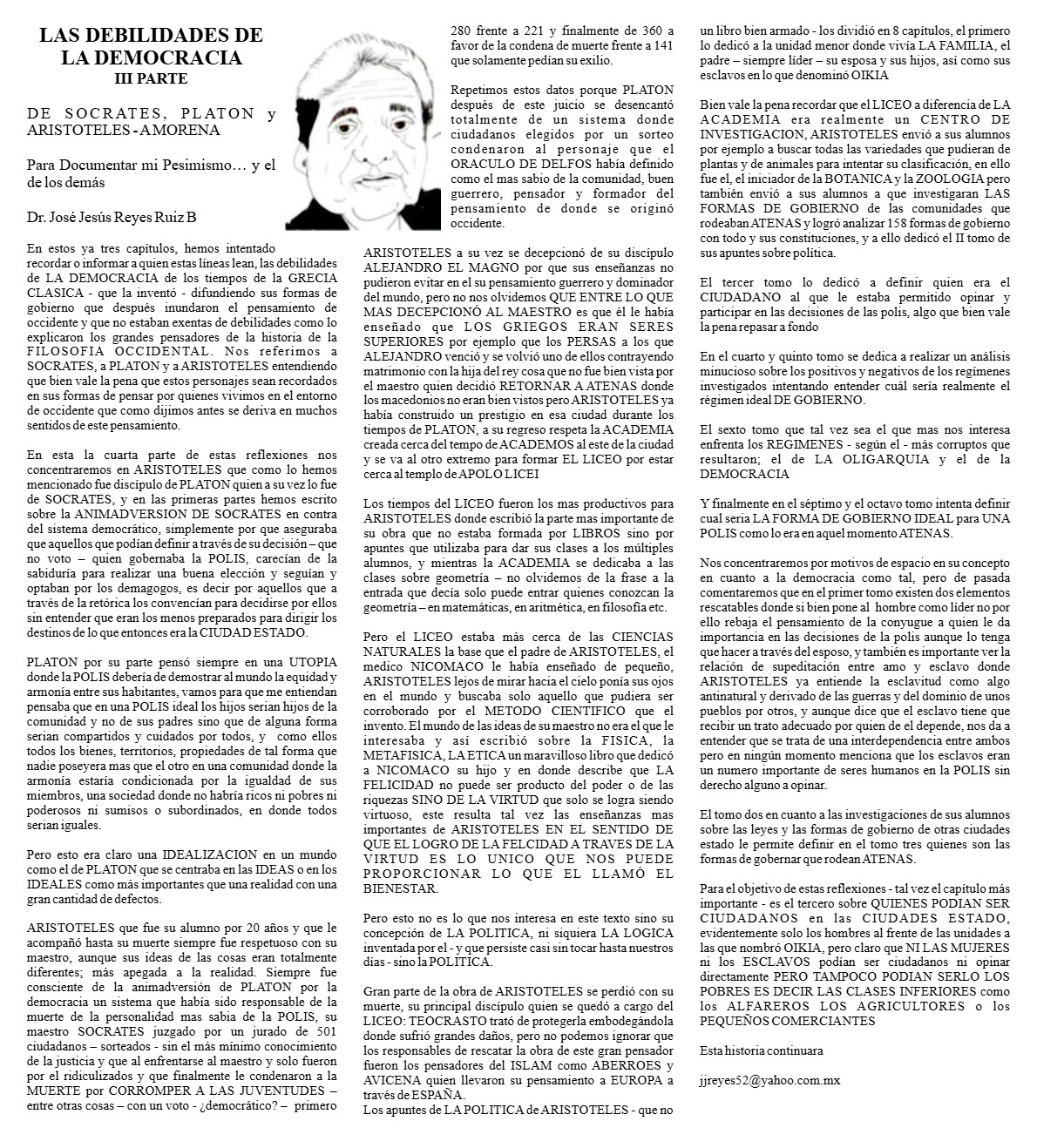 José de Jesús Reyes Ruíz LAS DEBILIDADES DE LA DEMOCRACIA III PAR LAS DEBILIDADES DE LA DEMOCRACIA III PARTE DE SOCRATES, PLATON y ARISTOTELES - A MORENA…El Nopal28 noviembre, 2025