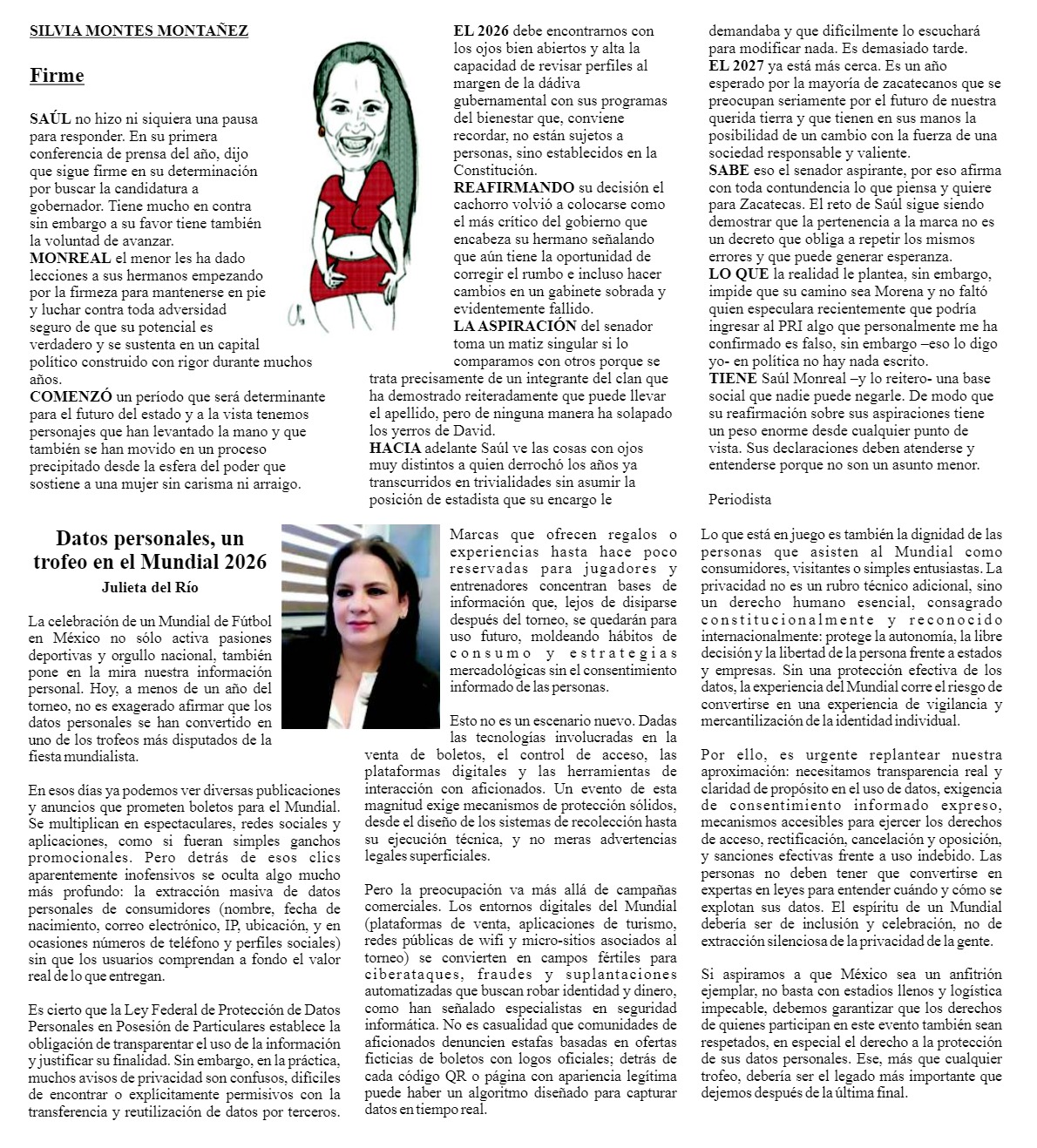 Silvia Montes Firme SILVIA MONTES MONTAÑEZ Firme SAÚL no hizo ni siquiera una pausa para responder. En su…El Nopal16 enero, 2026