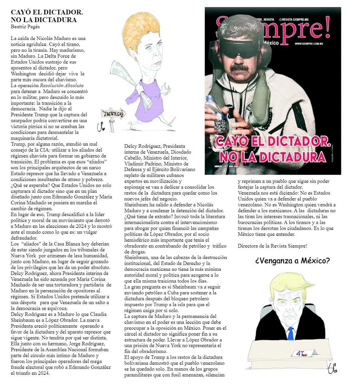 Beatriz Pagés CAYÓ EL DICTADOR. NO LA DICTADURA CAYÓ EL DICTADOR. NO LA DICTADURA Beatriz Pagés La caída de Nicolás Maduro es una…El Nopal16 enero, 2026