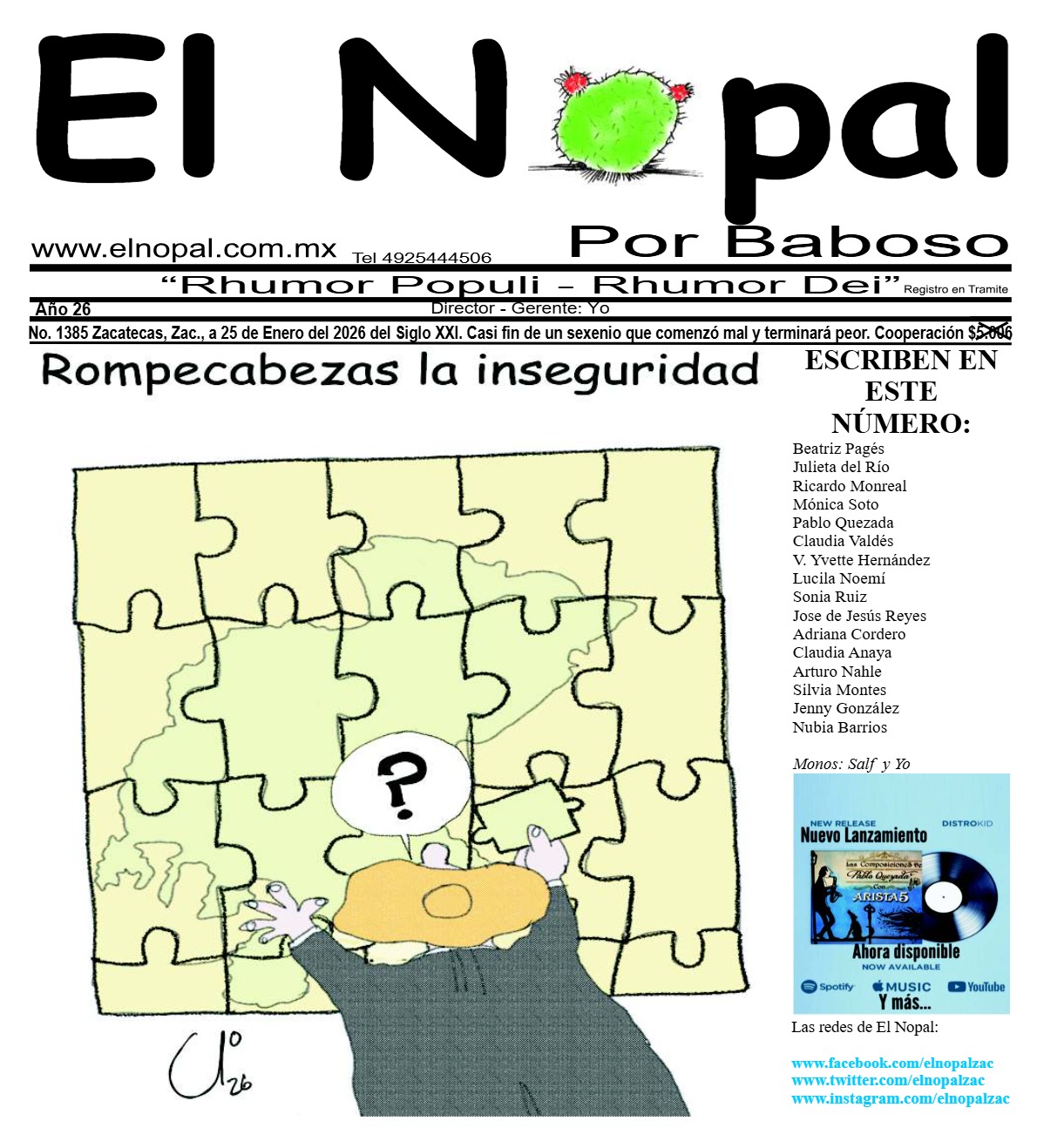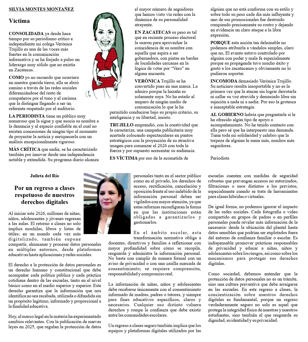 Silvia Montes Víctima SILVIA MONTES MONTAÑEZ Víctima CONSOLIDADA ya desde hace tiempo por su periodismo crítico e independiente…El Nopal23 enero, 2026