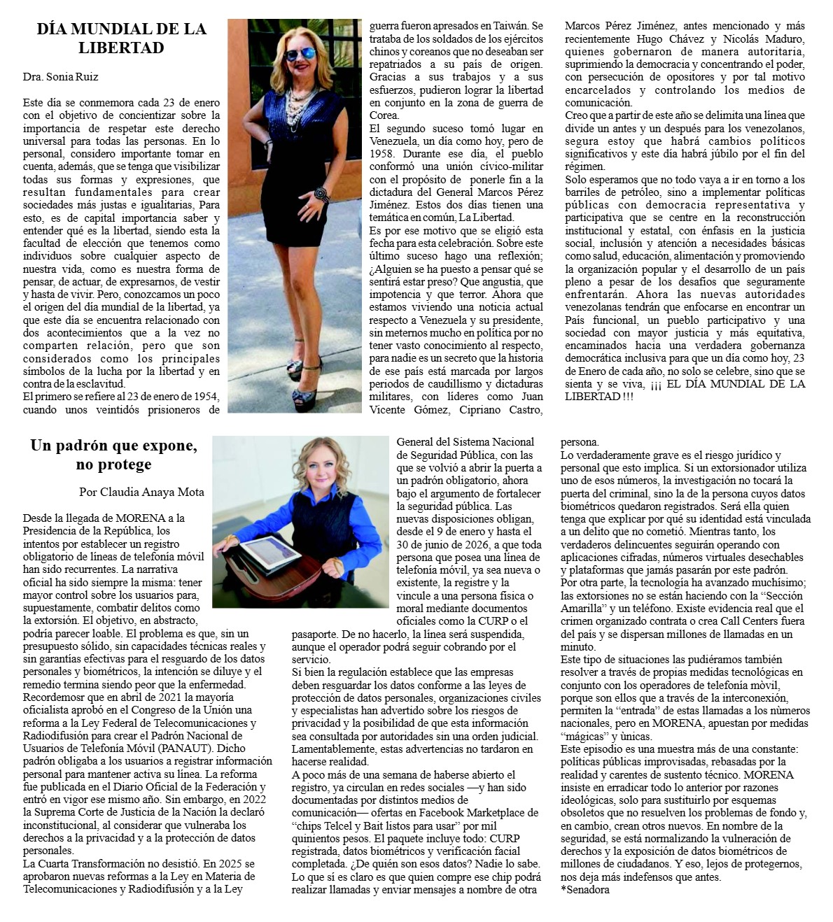 Sonia Ruíz DÍA MUNDIAL DE LA LIBERTAD DÍA MUNDIAL DE LA LIBERTAD Dra. Sonia Ruiz Este día se conmemora cada 23 de…El Nopal23 enero, 2026