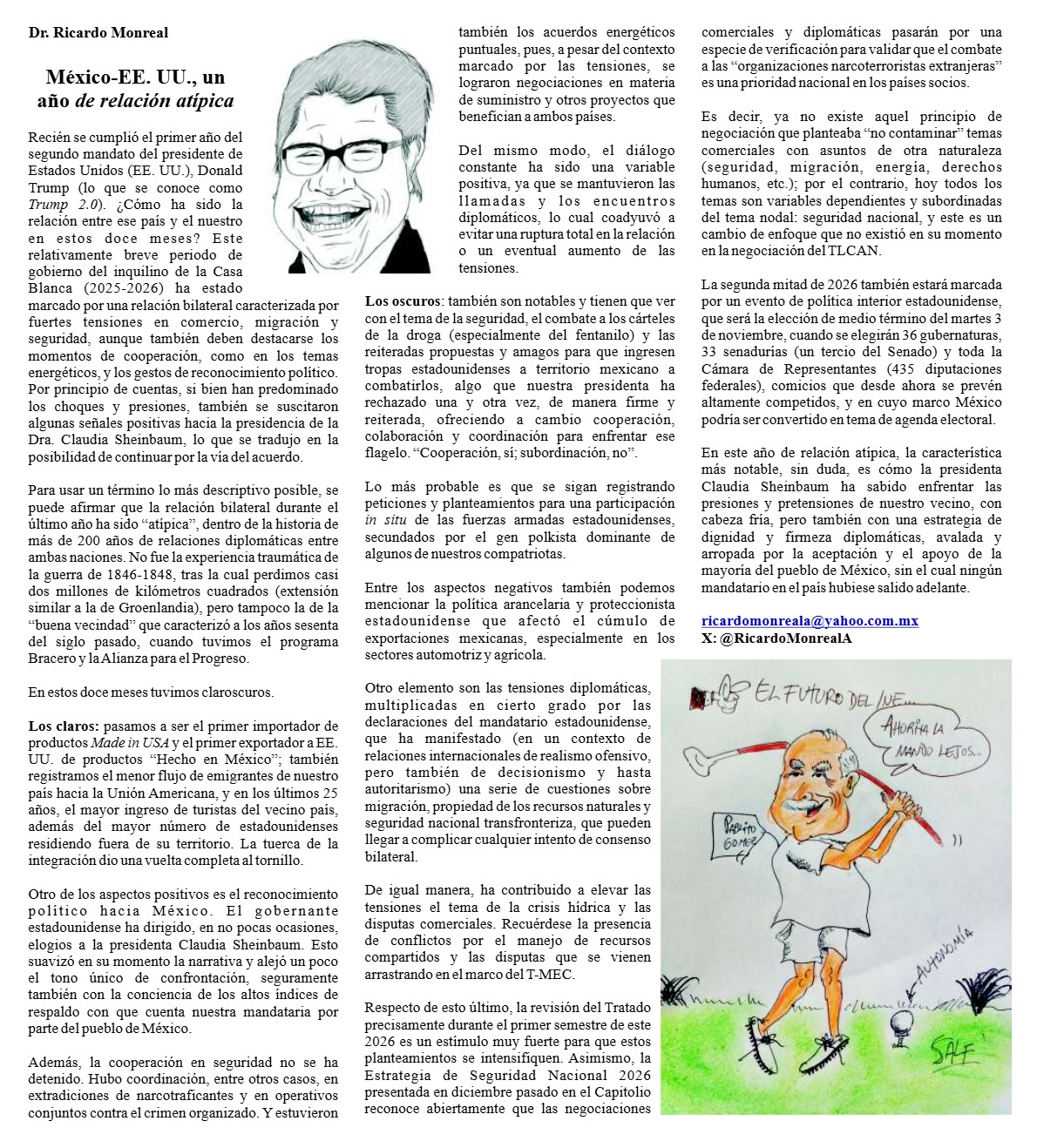 Ricardo Monreal Ávila México-EE. UU., un año de relación atípica Dr. Ricardo Monreal México-EE. UU., un año de relación atípica Recién se cumplió el primer…El Nopal23 enero, 2026