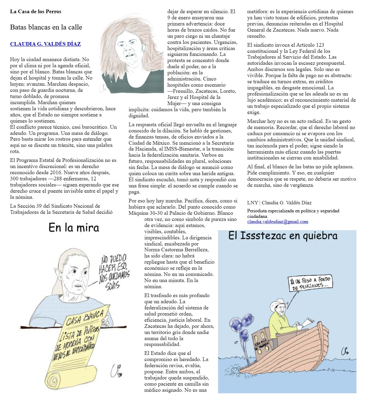 La Casa de los Perros Batas blancas en la calle La Casa de los Perros Batas blancas en la calle CLAUDIA G. VALDÉS DÍAZ Hoy…El Nopal23 enero, 2026