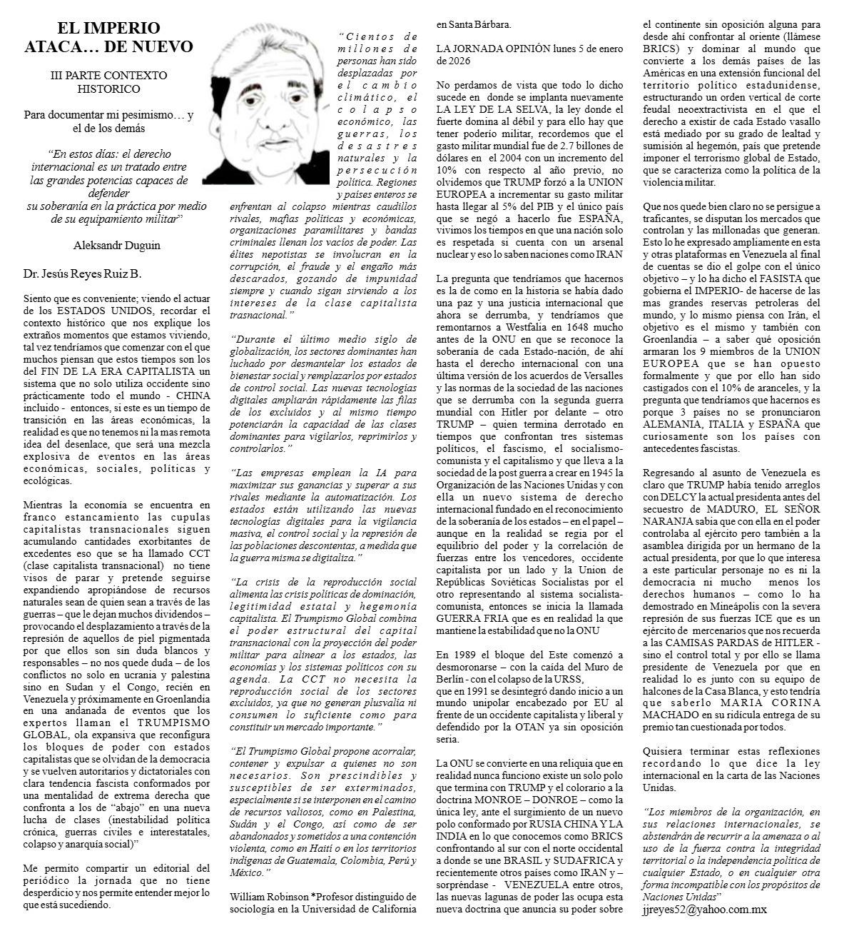 José de Jesús Reyes Ruíz EL IMPERIO ATACA… DE NUEVO III PARTE CONTEXTO HISTORICO EL IMPERIO ATACA… DE NUEVO III PARTE CONTEXTO HISTORICO Para documentar mi pesimismo… y el…El Nopal23 enero, 2026