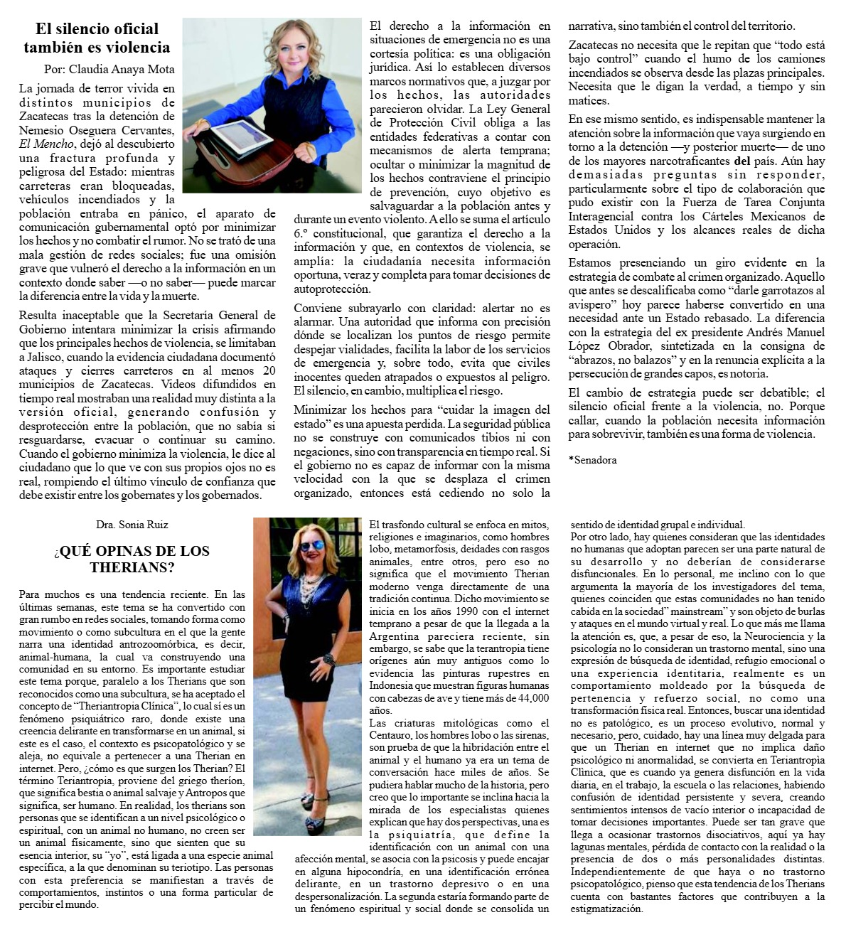 Sonia Ruíz ¿QUÉ OPINAS DE LOS THERIANS? Dra. Sonia Ruiz ¿QUÉ OPINAS DE LOS THERIANS? Para muchos es una tendencia reciente. En…El Nopal27 febrero, 2026