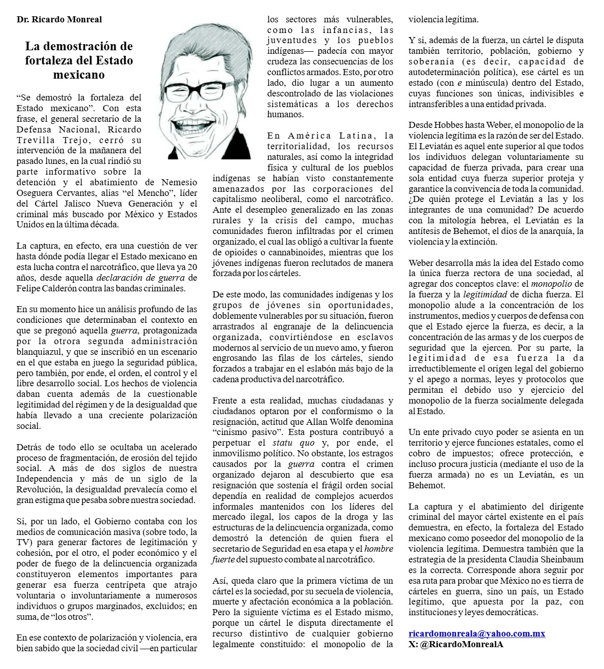 Ricardo Monreal Ávila La demostración de fortaleza del Estado mexicano Dr. Ricardo Monreal La demostración de fortaleza del Estado mexicano “Se demostró la fortaleza del…El Nopal27 febrero, 2026