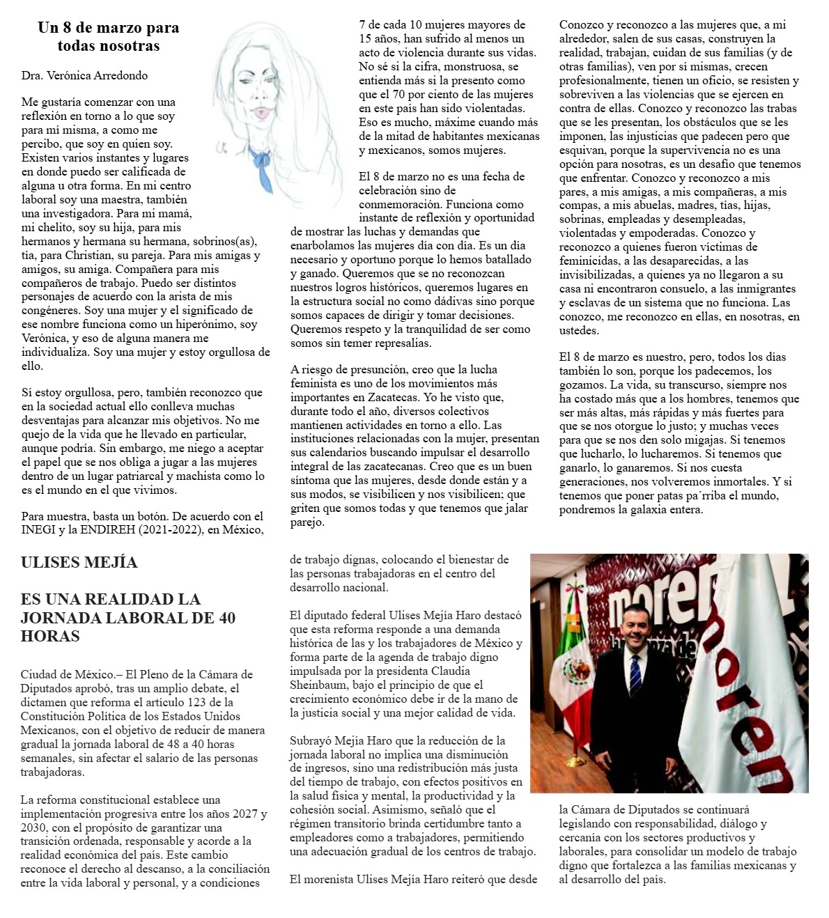 Verónica Arredondo Un 8 de marzo para todas nosotras Un 8 de marzo para todas nosotras Dra. Verónica Arredondo Me gustaría comenzar con una…El Nopal27 febrero, 2026