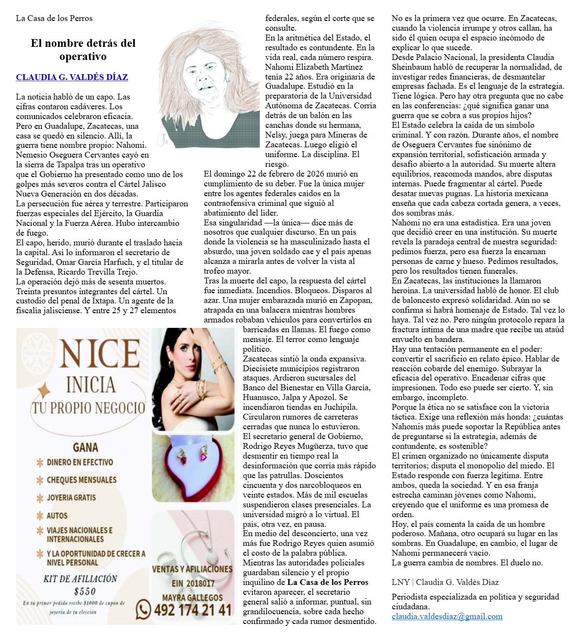 La Casa de los Perros El nombre detrás del operativo La Casa de los Perros El nombre detrás del operativo CLAUDIA G. VALDÉS DÍAZ La…El Nopal27 febrero, 2026