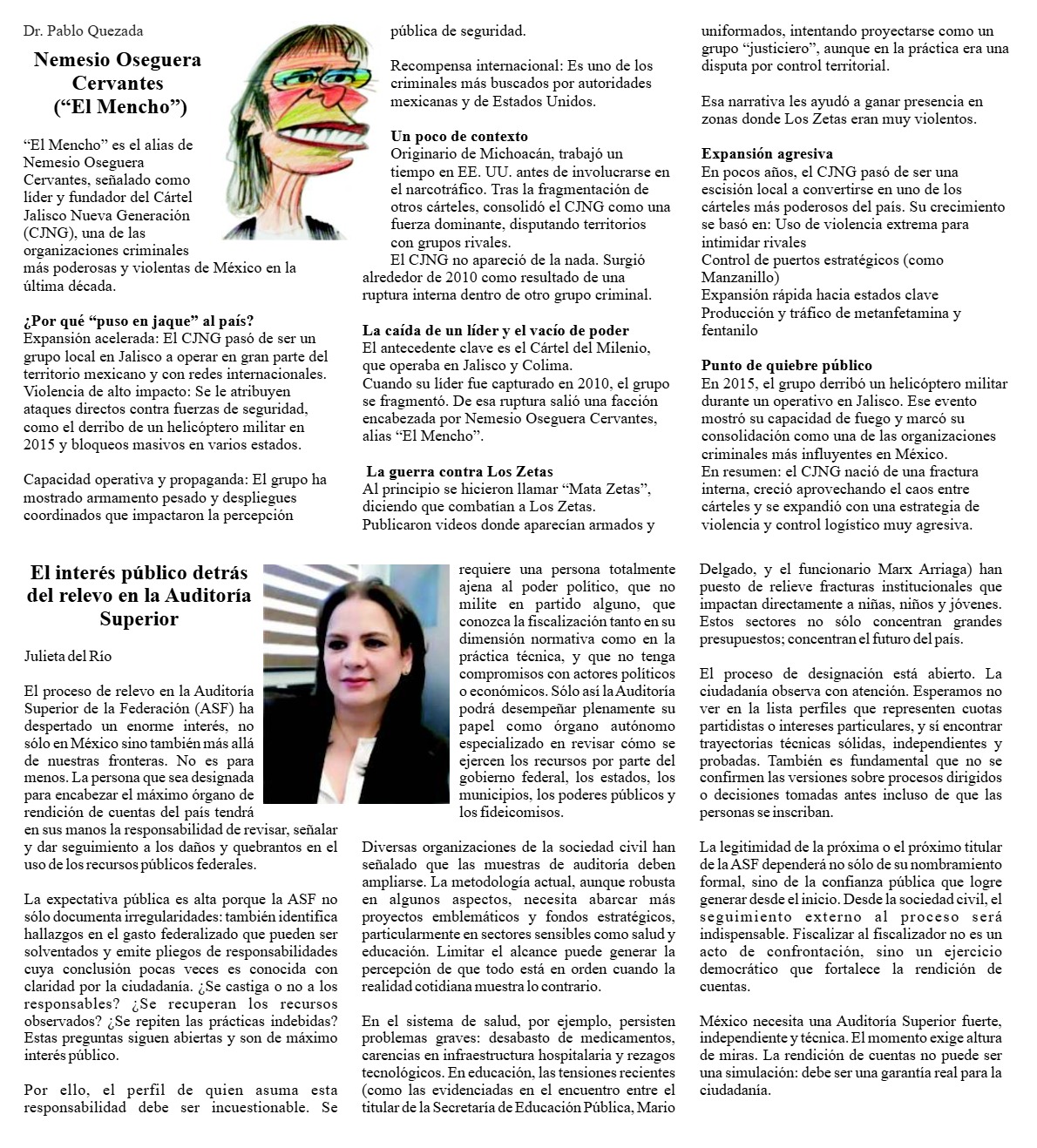 Yo Nemesio Oseguera Cervantes Dr. Pablo Quezada Nemesio Oseguera Cervantes (“El Mencho”) “El Mencho” es el alias de Nemesio…El Nopal27 febrero, 2026