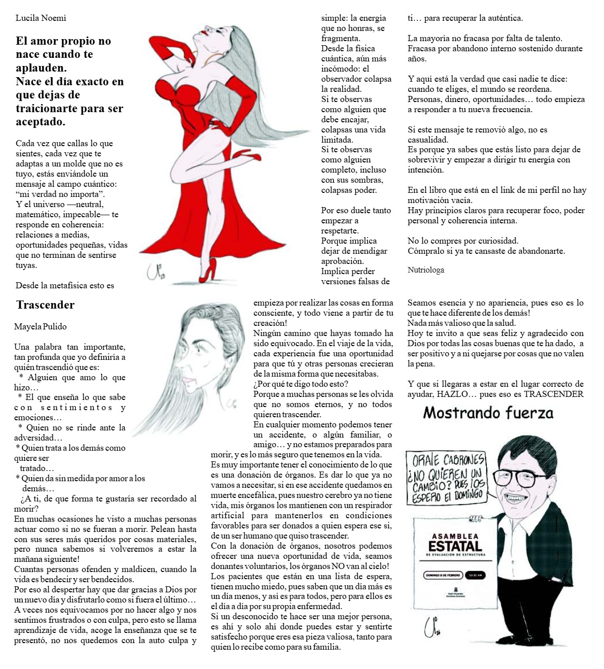 Lucila Noemí El amor propio no nace cuando te aplauden. Lucila Noemí El amor propio no nace cuando te aplauden. Nace el día exacto en…El Nopal13 febrero, 2026