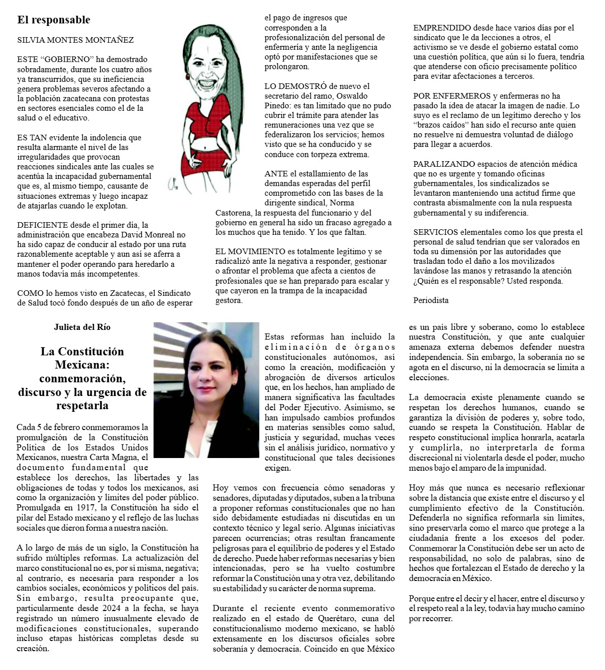 Julieta del Río La Constitución Mexicana: conmemoración, discurso y la urgencia de respetarla Julieta del Río La Constitución Mexicana: conmemoración, discurso y la urgencia de respetarla Cada 5…El Nopal13 febrero, 2026