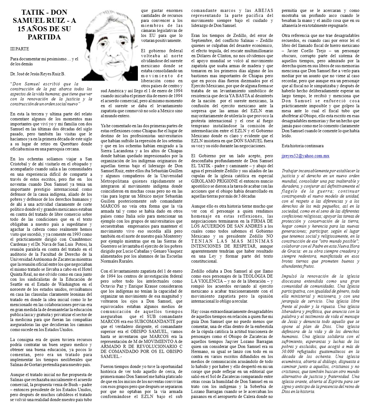 José de Jesús Reyes Ruíz TATIK – DON SAMUEL RUIZ – A 15 AÑOS DE SU PARTIDA III PARTE TATIK - DON SAMUEL RUIZ - A 15 AÑOS DE SU PARTIDA III PARTE Para…El Nopal13 febrero, 2026