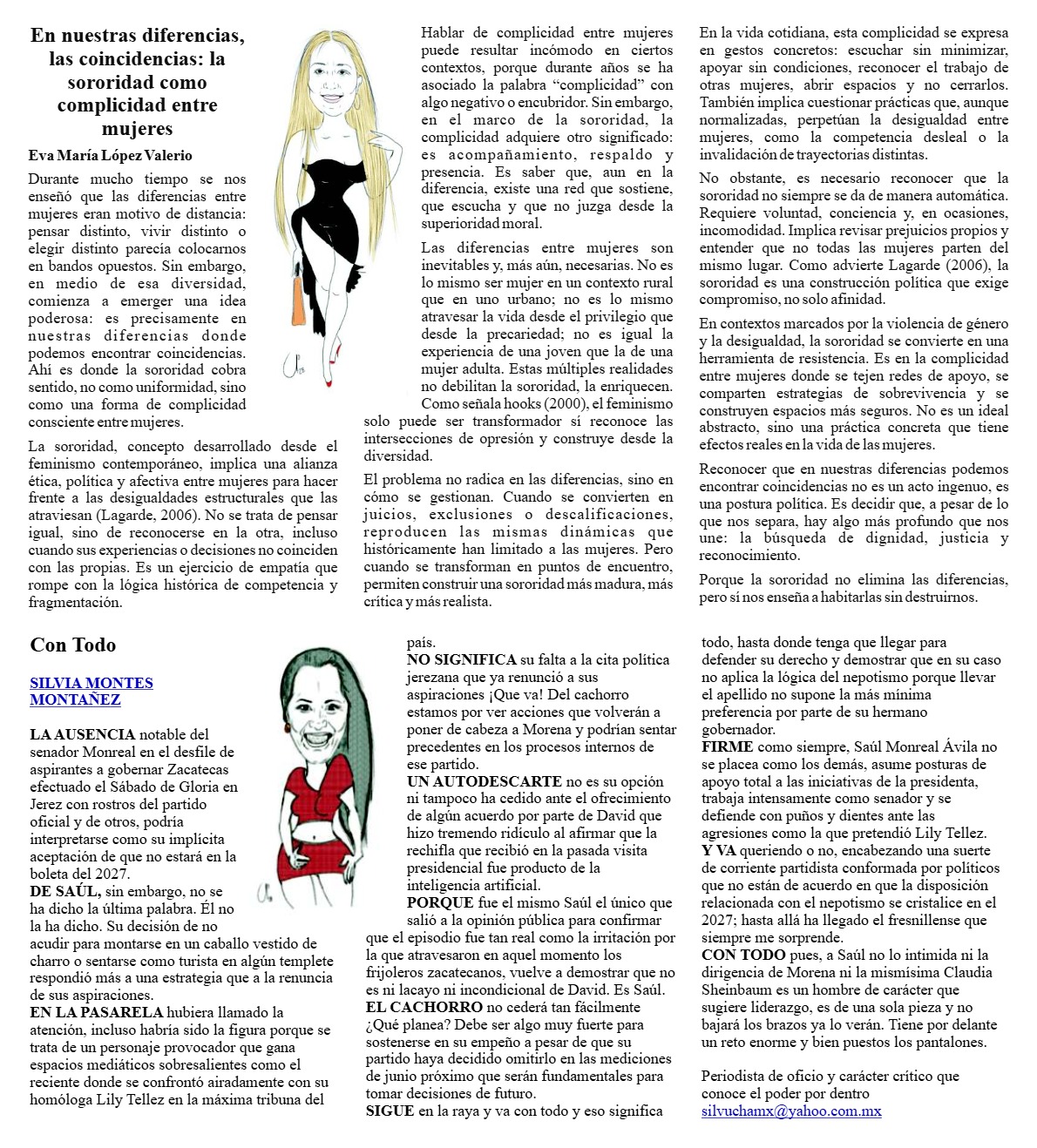 Silvia Montes Con Todo Con Todo SILVIA MONTES MONTAÑEZ LA AUSENCIA notable del senador Monreal en el desfile de…El Nopal17 abril, 2026