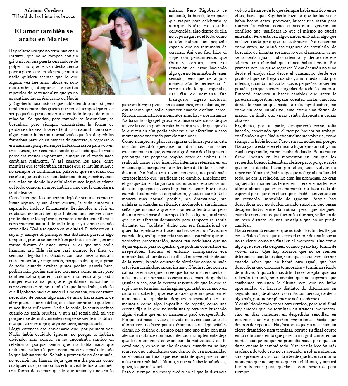 Adriana Cordero El amor también se acaba en Martes Adriana Cordero El baúl de las historias breves El amor también se acaba en Martes…El Nopal17 abril, 2026
