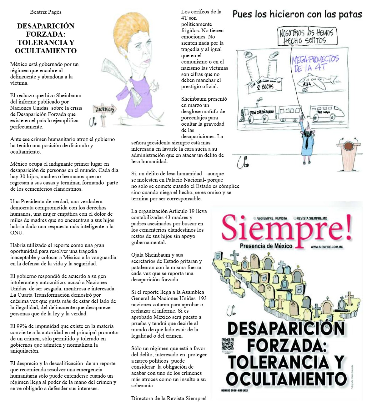 Beatriz Pagés DESAPARICIÓN FORZADA: TOLERANCIA Y OCULTAMIENTO Beatriz Pagés DESAPARICIÓN FORZADA: TOLERANCIA Y OCULTAMIENTO México está gobernado por un régimen que encubre…El Nopal17 abril, 2026