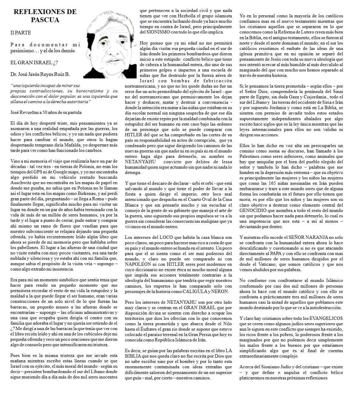 José de Jesús Reyes Ruíz REFLEXIONES DE PASCUA II PARTE REFLEXIONES DE PASCUA II PARTE Para documentar mi pesimismo… y el de los demás EL…El Nopal17 abril, 2026