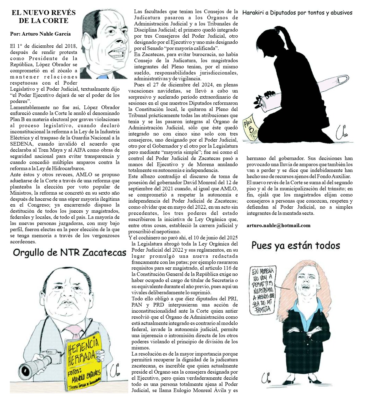 Arturo Nahle EL NUEVO REVÉS DE LA CORTE EL NUEVO REVÉS DE LA CORTE Por: Arturo Nahle García El 1° de diciembre del…El Nopal17 abril, 2026