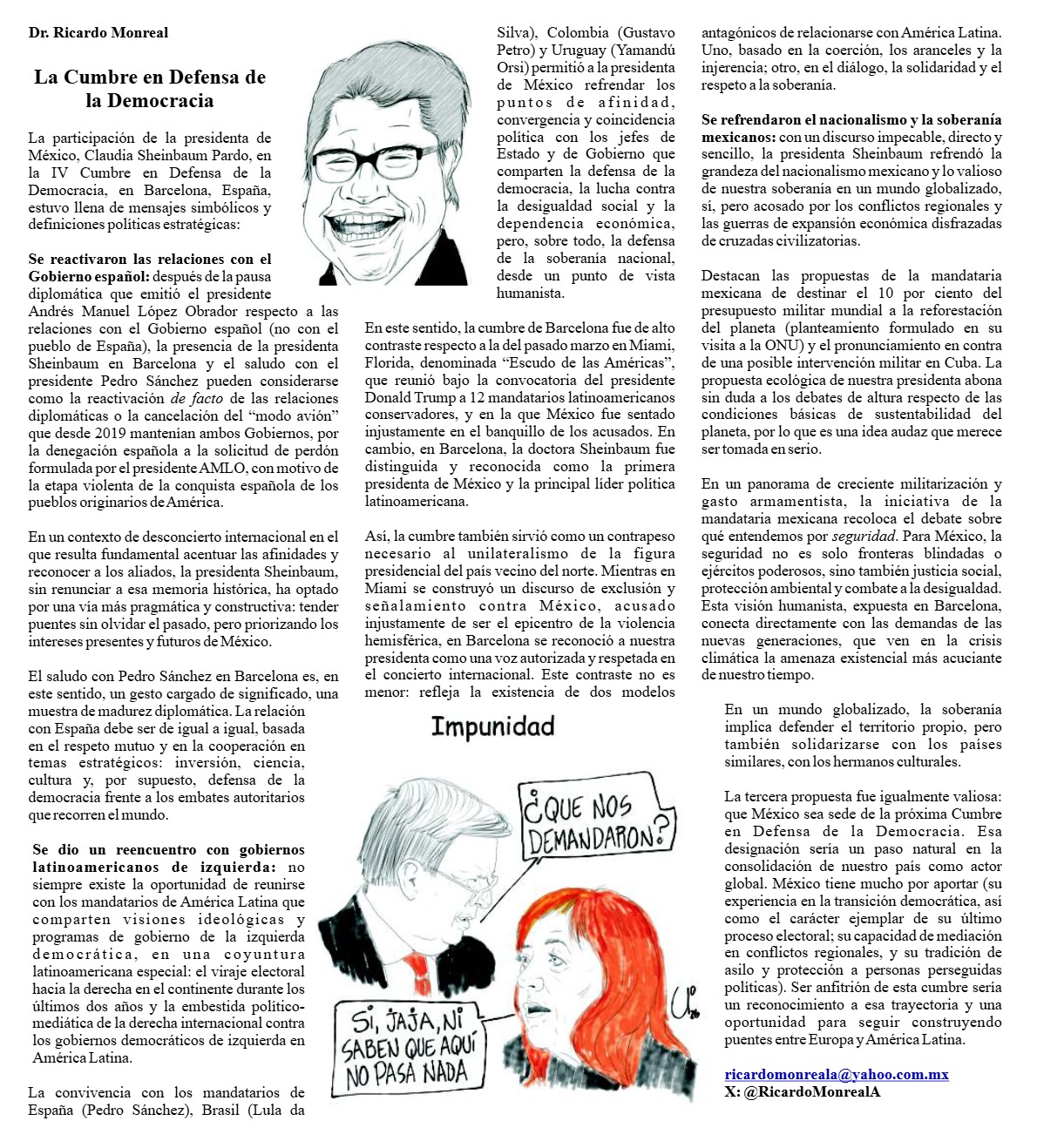Ricardo Monreal Ávila La Cumbre en Defensa de la Democracia Dr. Ricardo Monreal La Cumbre en Defensa de la Democracia La participación de la presidenta…El Nopal24 abril, 2026