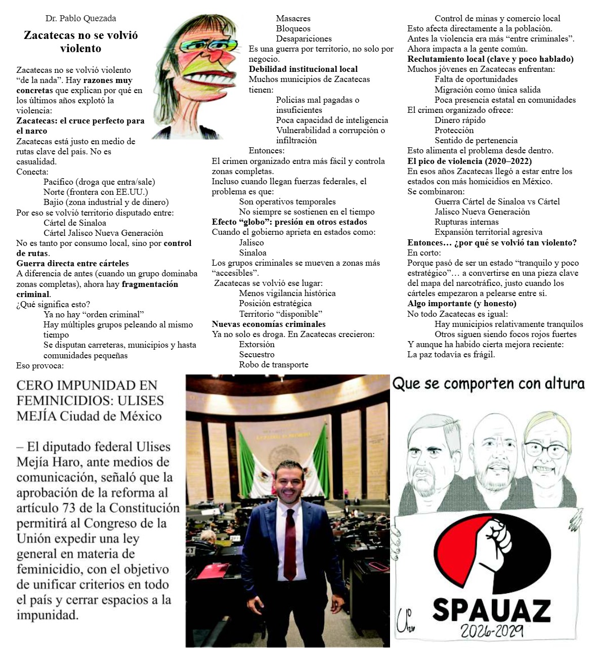 Yo Zacatecas no se volvió violento Dr. Pablo Quezada Zacatecas no se volvió violento Zacatecas no se volvió violento “de la…El Nopal24 abril, 2026