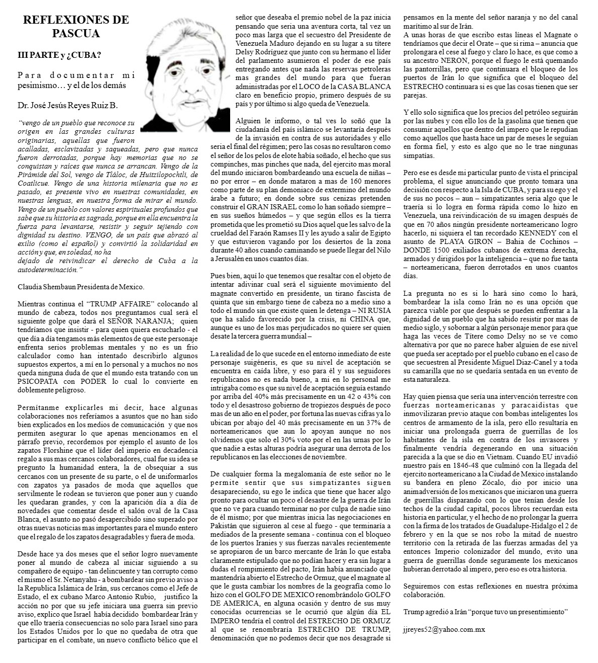 José de Jesús Reyes Ruíz REFLEXIONES DE PASCUA III PARTE y ¿CUBA? REFLEXIONES DE PASCUA III PARTE y ¿CUBA? Para documentar mi pesimismo… y el de los…El Nopal24 abril, 2026
