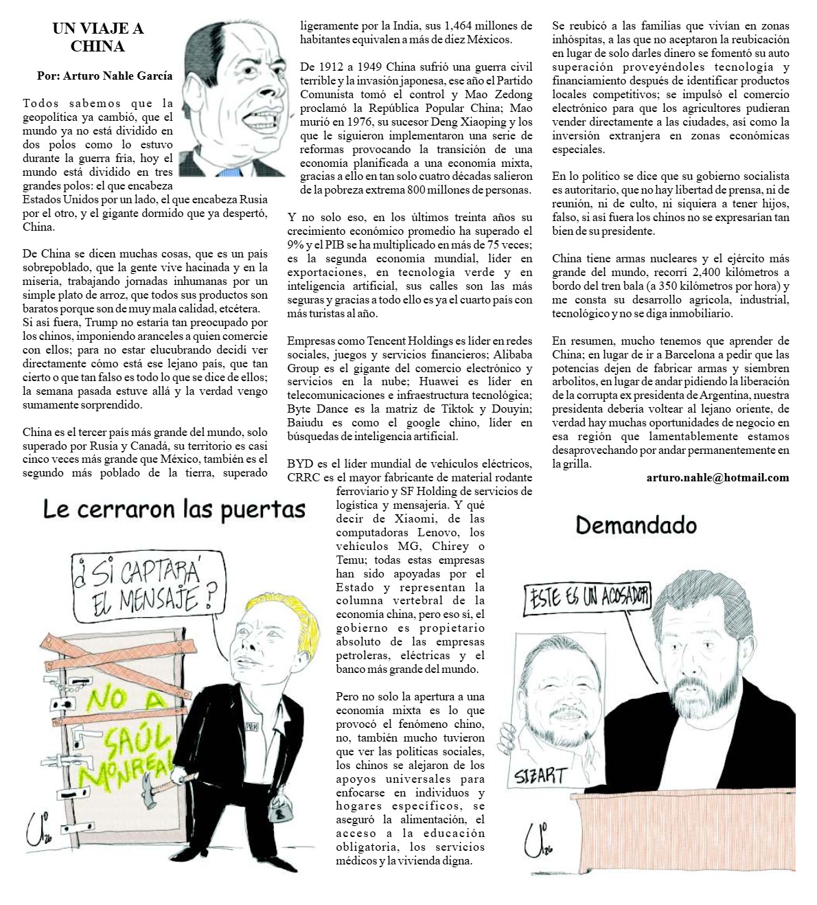 Arturo Nahle UN VIAJE A CHINA UN VIAJE A CHINA Por: Arturo Nahle García Todos sabemos que la geopolítica ya cambió,…El Nopal24 abril, 2026